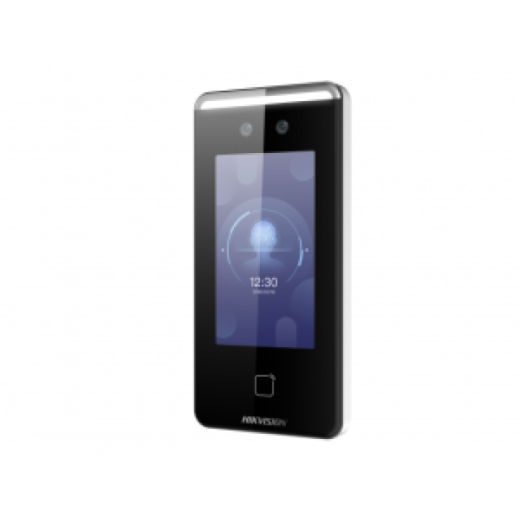 Терминал доступа с распознаванием лиц и карт Mifare 1K. 4,3" цветной IPS сенсорный экран (272×480); LED-подсветка; 3 000 лиц; 3 000 карт; 150 000 событий; H.264; WDR; детекция наличия/отсутствия маски; ОС Linux; тампер вскрытия; 1 реле; подключение кнопки выход и дверного контакта; Wiegand 26/34 вход/выход; RS-485 (для подключения считывателя карт/модуля безопасности DS-K2M06х); TCP/IP, ISUP 5.0, ISAPI; 10M/100M Ethernet; Wi-Fi; DC 12В; 2A. -30...+60°C; IP65. Габ.размеры: 83х172,5х23 мм. Поддержка двухстороннего видео-интеркома с домофоном и пультом консьержа Hikvision, Hik-Connect.