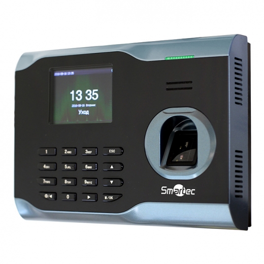 Smartec ST-FT161EM - терминал учета рабочего времени с идентификацией по отпечаткам пальцев и/или по проксимити картам, предназначен для работы в составе системы учета рабочего времени на базе программного обеспечения Таймекс для сбора данных о приходе/уходе персонала с работы. ST-FT161EM рассчитан на 3000 шаблонов, т.е. если на каждого человека заводится по 2 шаблона, то общее количество пользователей составит 1500.