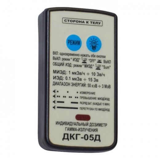 Индивидуальный дозиметр гамма-излучения ДКГ-05Д - прямопоказывающий электронный дозиметр для контроля дозовой нагрузки на персонал радиационно-опасных объектов, рассчитанный на жесткие условия эксплуатации.