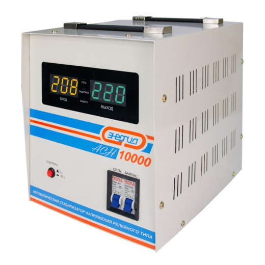 Релейный однофазный стабилизатор напряжения переменного тока предназначен для стабилизации переменного напряжения в сети электроснабжения для потребителей бытового и аналогичного назначения. Изделие относится к классу автотрансформаторных стабилизаторов со ступенчатым регулированием напряжения путем переключения отводов силового автотрансформатора с помощью электромеханических силовых реле, таким образом стабилизаторы Энергия АСН регулируют напряжение по релейному принципу.
