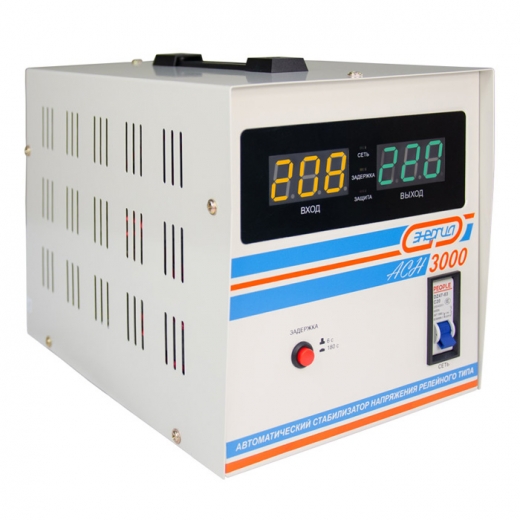 Релейный однофазный стабилизатор напряжения переменного тока предназначен для стабилизации переменного напряжения в сети электроснабжения для потребителей бытового и аналогичного назначения. Изделие относится к классу автотрансформаторных стабилизаторов со ступенчатым регулированием напряжения путем переключения отводов силового автотрансформатора с помощью электромеханических силовых реле, таким образом стабилизаторы Энергия АСН регулируют напряжение по релейному принципу.