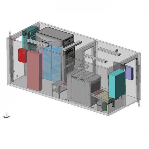 Модуль включает в себя рентгеновскую систему бесконтактного личного досмотра «Ястреб» (или подобную систему), систему досмотра багажа «Сокол» (сочетание технологии «на просвет» с технологией «обратного рассеяния») и датчики радиации.