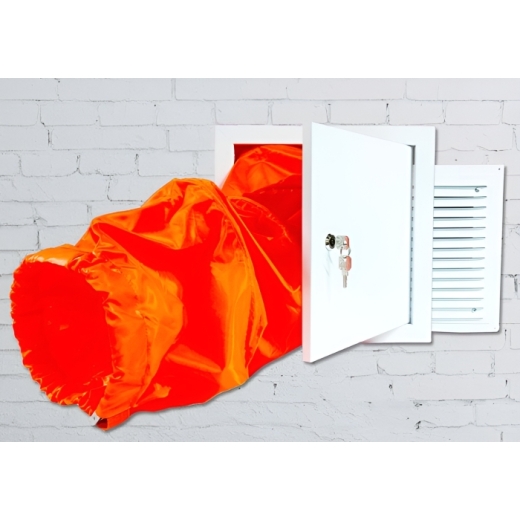 Узел стыковочный УС-1 без рукавчика приток для дымососа производительностью 8000 м3/час газонепроницаемое и огнестойкое устройство, размещенное в двери или стене защищаемого помещения, обеспечивающее подсоединение дымососа и организацию свободного прохода в ограждающей конструкции для удаления дыма, газообразных продуктов горения, огнетушащего газа, витающих частиц порошка и аэрозоля из аварийного помещения после действия автоматической установки газового, порошкового или аэрозольного пожаротушения.Применение узла стыковочного позволяет предотвратить распространение дыма, газов и мелкодисперсной фракции огнетушащего порошка и аэрозоля за пределы аварийного помещения.Детали стыковочного узла, которые могут подвергаться тепловому воздействию пожара, изготовлены по специальной технологии, которая обеспечивает огнестойкость узла стыковочного не менее 90 мин.Стыковочный узел УС-1 без рукавчика приток для дымососа производительностью 8000 м3/час имеет сертификат пожарной безопасности ССПБ.RU.ОП073.Н.00185Технические характеристики:Габаритные размеры, дверца наружная / панель задняя, мм
