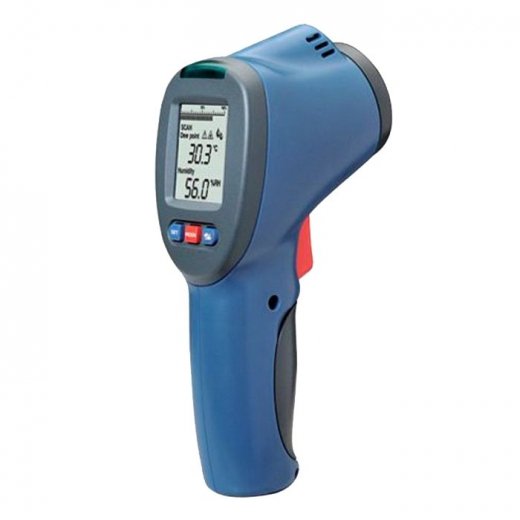 Пирометр DT-8663 позволяет измерять температуру среды, влажность и температуру точки росы с помощью дополнительного датчика влажности и может использоваться на складе и в других местах, где существует вероятность образования плесени.