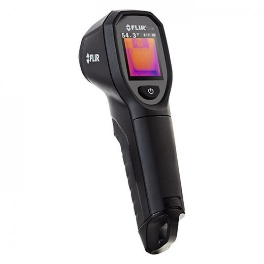 FLIR TG130 - тепловизионный инфракрасный пирометр, оснащён небольшим экраном, это не просто пирометр, скорее миниатюрный тепловизор. Измеряет температуру от –10 до +150 °C, результат отображается на 1,8 дюйма ЖК TFT-дисплей в виде цифр, показывающих температуру в центральной точке и небольшого инфракрасного изображения. Рабочий диапазон температур пирометра от –10 до +45 °C, хранения от –40 до +70 °C. Ударопрочный корпус выдерживает падения с 2 метровой высоты. Работает от 3 обычных пальчиковых батареек 4 часа при непрерывном сканировании.