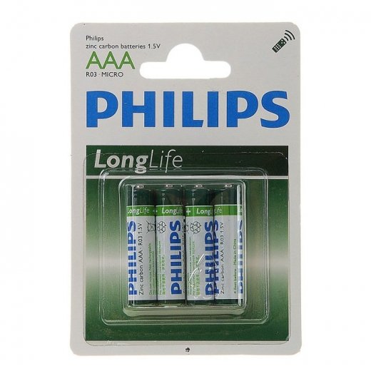Philips R03-4BL LONG LIFE [R03-P4/01B] (48/864/25920)- мизинчиковая солевая батарея, для приборов с низким потреблением энергии.