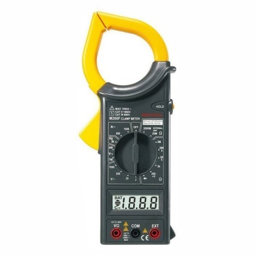 Токоизмерительные клещи Mastech M266F - прибор, который позволяет измерять переменный ток без разрыва самой цепи, в который проводиться измерение. Прибор получает результат измерений исходя из закона электромагнитной индукции. Если в проводнике течет ток, то вокруг проводника создается магнитное поле и если этот проводник охватить другим проводником, то в нем возникает ЭДС (ЭлектроДвижущая Сила). Полученная ЭДС при определенных условиях пропорциональная измеряемому току. И таким образом измерив, напряжение на данном проводнике, станет возможным и определение величины измеряемого тока. Токоизмерительные клещи серии M266 являются многофункциональными приборами, с помощью которых можно измерить множество параметров. Кроме основной функции, измерения переменного тока, с помощью M266F можно измерить постоянное и переменное напряжение, сопротивление и частоту. Кроме того у данного прибора есть функция прозвонки целостности цепи и проверки диодов. Токовые клещи M266F имеют функцию удержания результата измерений Data hold, для тех случаев, когда измерения проводятся в труднодоступных местах и не всегда есть возможность взглянуть на экран. Прибор изготовлен из высококачественных материалов и имеют эргономичный дизайн. Инженеры старались максимально упростить прибор, и по этому, с ним легко работать даже одной рукой. Кроме того у прибора усиленный переключатель, благодаря которому исключается возможность случайного нажатия. Калибровка и тестирование приборов произведено под контролем компании REXANT INTERNATIONAL.