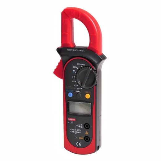 Токоизмерительные клещи UNI-T UT201 - это прибор, который позволяет измерять переменный ток без разрыва самой цепи, в который проводиться измерение. Прибор получает результат измерений исходя из закона электромагнитной индукции. Если в проводнике течет ток, то вокруг проводника создается магнитное поле и если этот проводник охватить другим проводником, то в нем возникает ЭДС (ЭлектроДвижущая Сила). Полученная ЭДС при определенных условиях пропорциональная измеряемому току. И таким образом измерив, напряжение на данном проводнике, станет возможным и определение величины измеряемого тока. Токоизмерительные клещи серии UT200 являются многофункциональными приборами, с помощью которых можно измерить множество параметров. Кроме основной функции, измерения переменного тока, с помощью UT201 можно измерить постоянное и переменное напряжение, сопротивление. Кроме того у данного прибора есть функция прозвонки целостности цепи и проверки диодов. Токовые клещи UT201 имеют функцию удержания результата измерений Data hold, для тех случаев, когда измерения проводятся в труднодоступных местах и не всегда есть возможность взглянуть на экран. Прибор изготовлен из высококачественных материалов и имеют эргономичный дизайн. Инженеры старались максимально упростить прибор, и по этому, с ним легко работать даже одной рукой. UT201 имеет функцию автоматического выбора пределов измерений. В отличие от устаревших моделей, где вам приходилось вручную выставлять пределы, сейчас же нужно всего лишь выбрать какой из параметров вы собираетесь измерять. Кроме того у прибора усиленный переключатель, благодаря которому исключается возможность случайного нажатия. Калибровка и тестирование приборов произведено под контролем компании REXANT INTERNATIONAL.