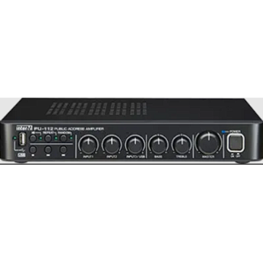 Inter-M PU-112 – компактный трансляционный микшер-усилитель с встроенным источником сигналов и номинальной выходной мощностью 120 Вт, применяемый для построения 1-зонных систем озвучивания и оповещения небольших объектов (кафе, магазины, салоны красоты и др.).