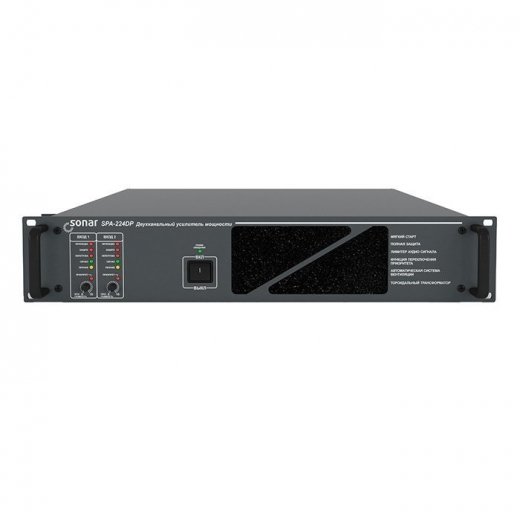 Sonar SPA-224DP - современный 240-ваттный усилитель с двумя независимыми каналами передачи звукового сигнала с защитой от скачков, короткого замыкания на выходе и перегрузки переменного тока.