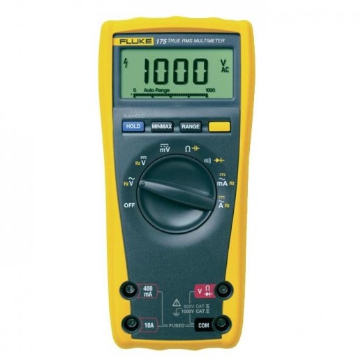 Fluke 175 - цифровой мультиметр, измеряет постоянный и переменный ток, сопротивление, емкость, частоту, постоянный и переменный ток, прозвонку цепей и параметры p-n переходов. Модель оснащена функциями измерения эффективного или среднеквадратического значения переменного напряжения и тока (True RMS), а также регистрации минимума,максимума и среднего значения.