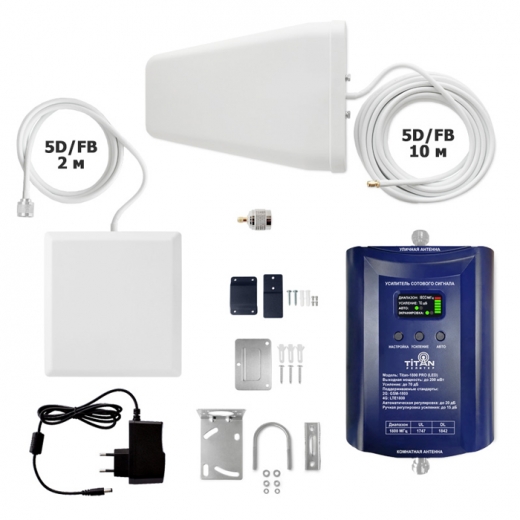 Комплект Titan-1800 PRO (LED) - способен раскрыть весь потенциал современной сотовой связи. Характерной особенностью этого комплекта является ручная регулировка репитера и возросший раздающий сигнал до 1000 квадратных метров. Приятная цена, характерный дизайн, автоматическая регулировка, отличное качество исполнения - вот что выделяет его.