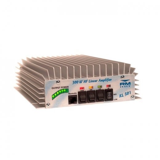 Усилитель мощности RM KL 501 используется для усиления сигнала HF диапазона 3-30 МГц для расширения радиуса и улучшения качества передачи. Усилитель разработан по мостовой схеме типа Push-Pull с работой в режиме SSB. Данная модель оснащена антенным предусилителем 26 дБ, индикатором выходной мощности с 3-мя уровнями. Конструкция усилителя оснащена радиатором в виде корпуса усилителя. В усилителе KL 501 предусмотрена защита от переполюсовки напряжения питания.