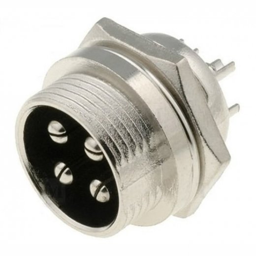 P-1118 4pin - разъём серии P, 4 контакта, монтаж панельный под гайку.