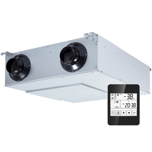 В установке имеется две скорости вращения вентиляторов, возможность управления внешним электронагревателем (поставляется отдельно) и электронная защита рекуператора от обмерзания.