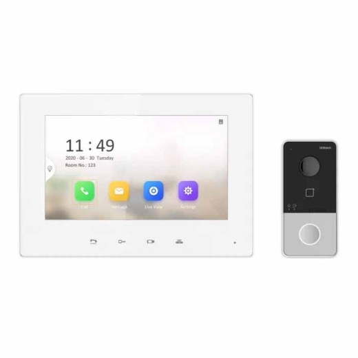 2Мп IP вызывная панель на одного абонента с ИК-подсветкой до 3м, угол обзора 129°, PoE/ 12В DC; WDR; BLC; DNR; 10M/100M Ethernet; 1 реле для замка; RS-485; IP65, -40℃ до 55℃; пластик; накладной монтаж; IP видеодомофон сенсорный 7" TFT LCD экран 1024*600; тревожные входы/выходы 8/2; RS-485; 10M/100M Ethernet; DC12В/PoE; 10Вт; 0 °C...+55°C; 200 × 140 × 15.1 мм, адаптер в комплекте