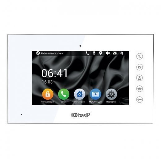 BAS-IP AQ-07 W v4 - IP видеодомофон на операционной системе Android. Этот стильный и многофункциональный IP видеодомофон. Благодаря Android, видеодомофон стал более быстрым и надёжным. У него 7” сенсорный емкостный экран, поэтому управлять домофоном стало еще легче и удобней.
