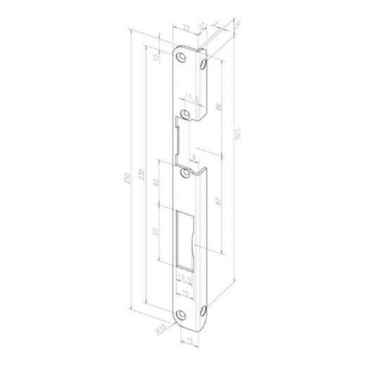 Eff-Eff (513 35) (----51335-04) лицевая панель левая - угловая запорная планка с вырезами под язычок и ригель, левая.