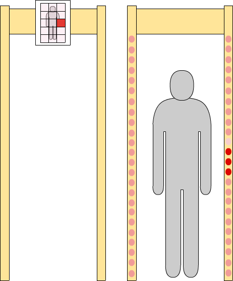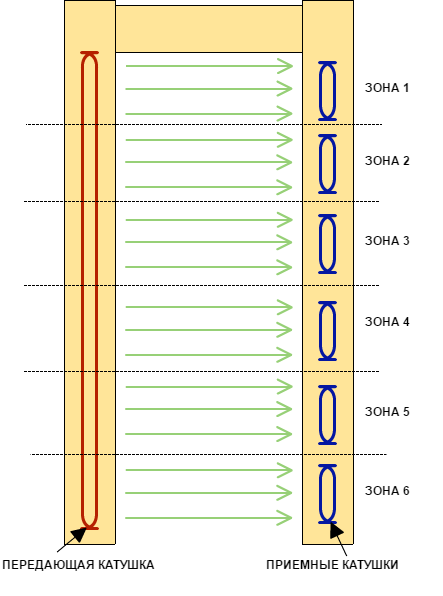 Многозонный металлодетектор многократно увеличивает эффективность досмотра оператором. Есть большое количество моделей с разным количеством зон обнаружения. Обычно количество зон детектирования составляет от 2 до 60. Чем больше количество зон тем дороже металлодетектор. И так, мы выяснили что, чем больше количество зон обнаружения, тем быстрее и эффективнее проходит досмотр человека.