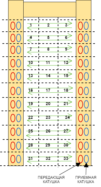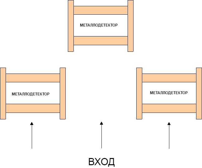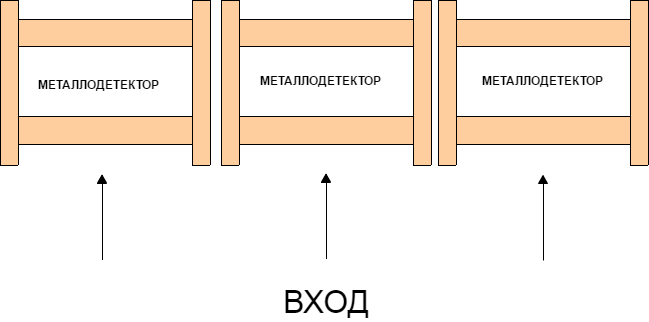 | Установка металлодетекторов в “шахматном” порядке | Установка металлодетекторов в ряд вплотную друг к другу |